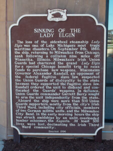 The Lady Elgin left Milwaukee on September 6th for Chicago carrying members of Milwaukee’s Union Guard, on their way to hear a campaign speech by Stephen A. Douglas, who was running against Abraham Lincoln. The manifest listed over 400 passengers and crew, as well as cattle and other cargo. The passengers spent September 7th listening to a number of political speeches, then were entertained in the evening by a band aboard the paddle steamer, which finally set out for Milwaukee late that night.