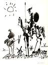 Don Quixote, having straightened out his lance, waded in amid them, yelling and screaming and all kinds of shit.