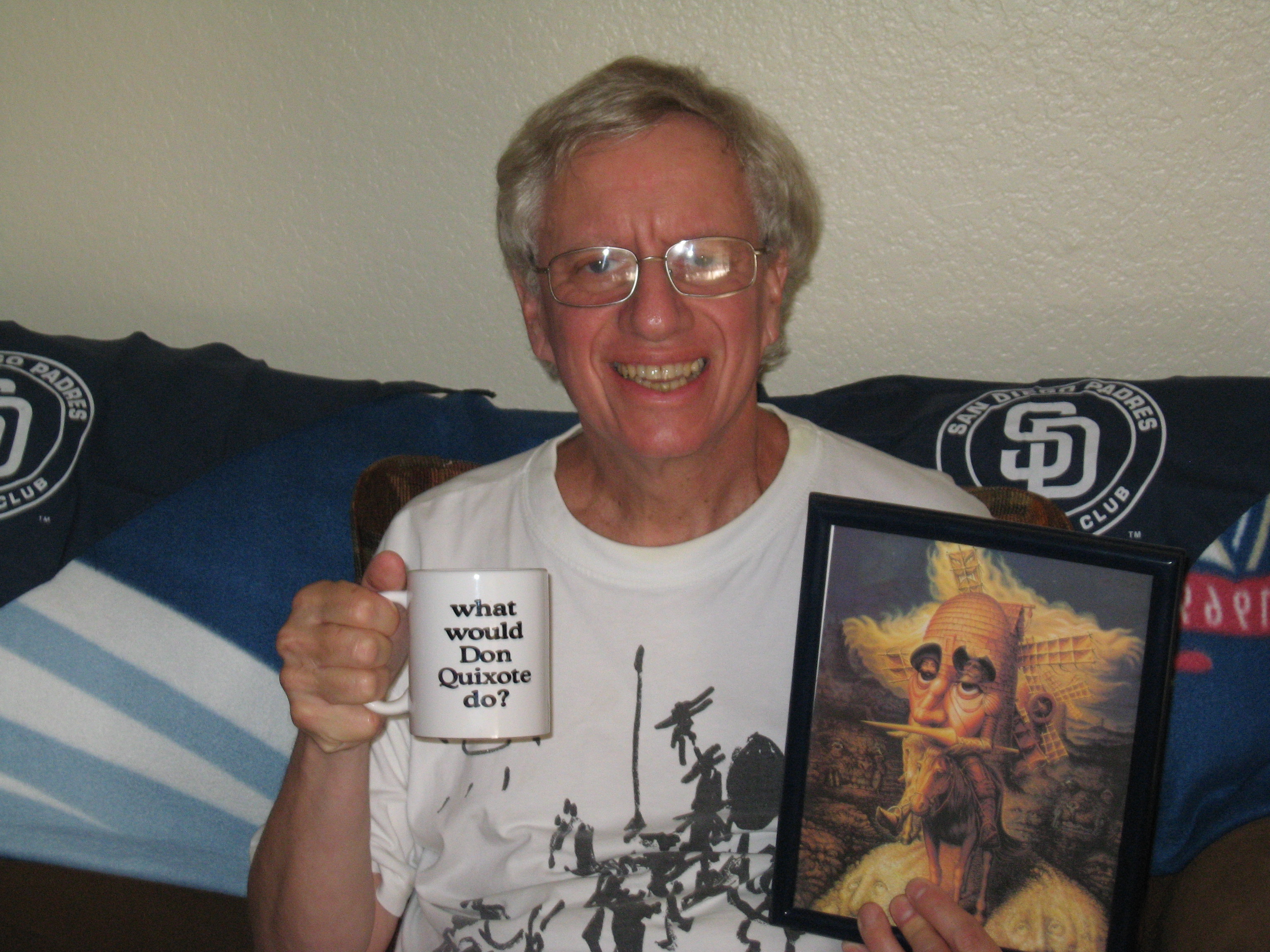 Weird, huh? So what is it that attracts me to this character? Maybe it’s the fact that no matter how much he’s put down for being so different, no matter how seemingly difficult—even impossible—the obstacle before him appears, DON QUIXOTE DOESN’T GIVE UP. This truly resonates with me, as I’ve tilted with more than my share of windmills throughout my life, as Don Quixote does in his “second sally.” He falls down, gets up, and tries all the harder. I like that.